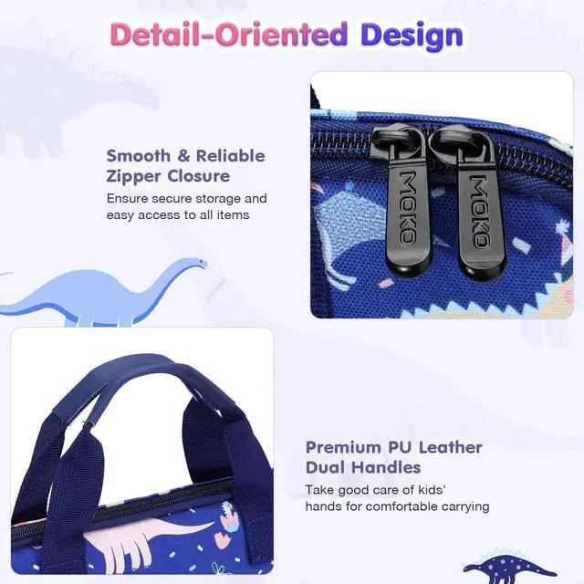MoKo 10-12.5 Inch Kids Tablet Sleeve Carrying Case for Fire HD 10 13th/11th Gen, Fire HD 8/7 Kids 2022, Tablet Bag with Shoulder Strap for 10/10.1 Inch Android 12/13, Blue Dinosaur