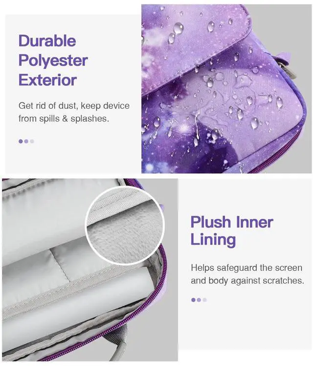 [High-end Material] Made of premium polyester exterior, features a water-resistant exterior and gets rid of dust and keeps your device from spills and splashes. Soft and thickened lining helps safeguard the screen and body against scratches.