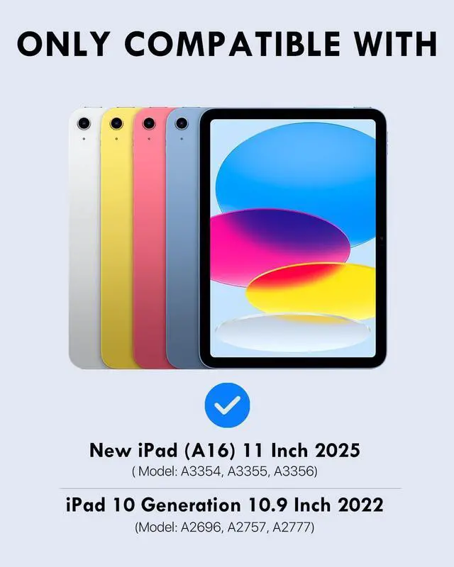 Compatibility: Designed for iPad 11th generation 11 inch 2025 release (A16, Model: A3354, A3355, A3356), iPad 10th generation 10.9 inch 2022 (Model: A2696, A2757, A2777). Including 1 x iPad 11th/10th generation case, 1 x Wireless Keyboard, 1x USB charging cord, 1 x user guide. NOT compatible with any other iPad models