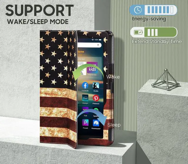 Auto Wake/Sleep: Built-in magnetic strip, automatically wakes or puts your Kindle fire 8 tablet 2022 to sleep when the lid is opened and closed. Protects and extends battery life.