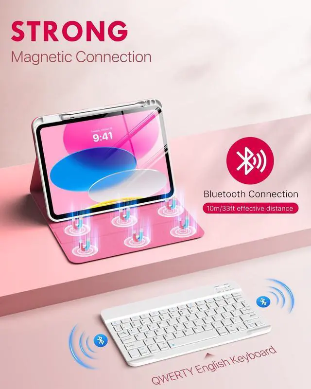 Detachable Wireless KeyboardThis iPad 10th Generation Case with Keyboard is strong magnetic so it can be easily repositioned or removed from the case. This ipad 11th generation keyboard case is a QWERT keyboard layout, equipped with practical shortcuts to improve work efficiency and compatible with IOS, Windows, and Android systems