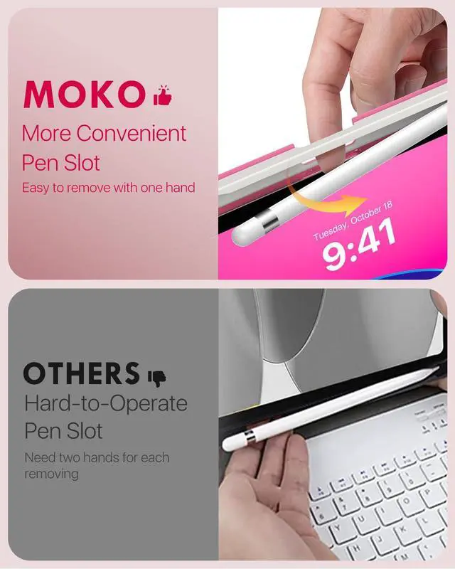 MoKo for iPad (A16) 11th Generation Case with Keyboard 11 inch 2025, iPad 10th Generation 10.9 inch Case with Pencil Holder, Multi-Angle Detachable Bluetooth Keyboard, Shiny Pink