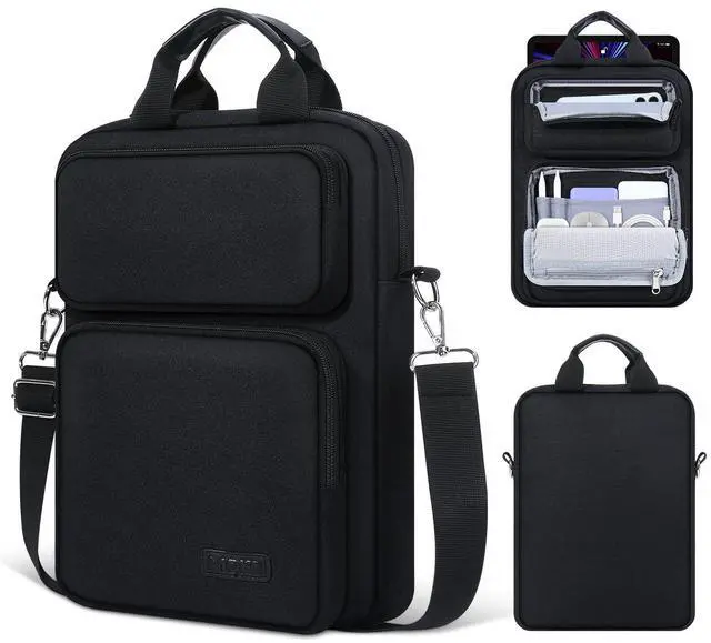 MoKo 10-13 inch Tablet Sleeve Bag for iPad Pro/Air M4 13inch, Pro 12.9 /11 inch, 10.9" iPad 10th/Air 5/4th, Galaxy Tab S8+/S9+ 12.4, Carrying Case with Multi-Pockets & Removable Shoulder Strap, Black