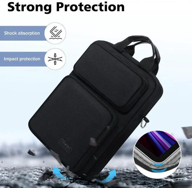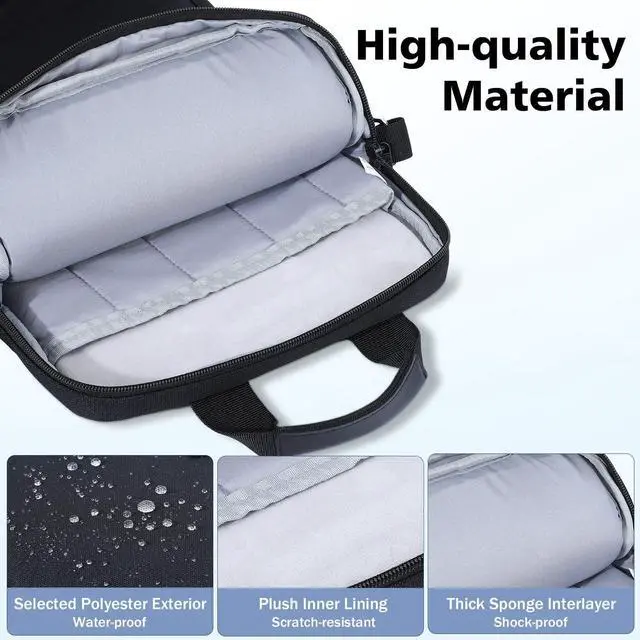 High-quality Material: The tablet sleeve bag carrying is made of water-proof and wear-proof polyester to get rid of dust and keep your device from spills and splashes. The thick sponge interlayer provides shock protection against bumps and knocks. The soft plush inner lining of the main compartment prevents your devices from scratches.
