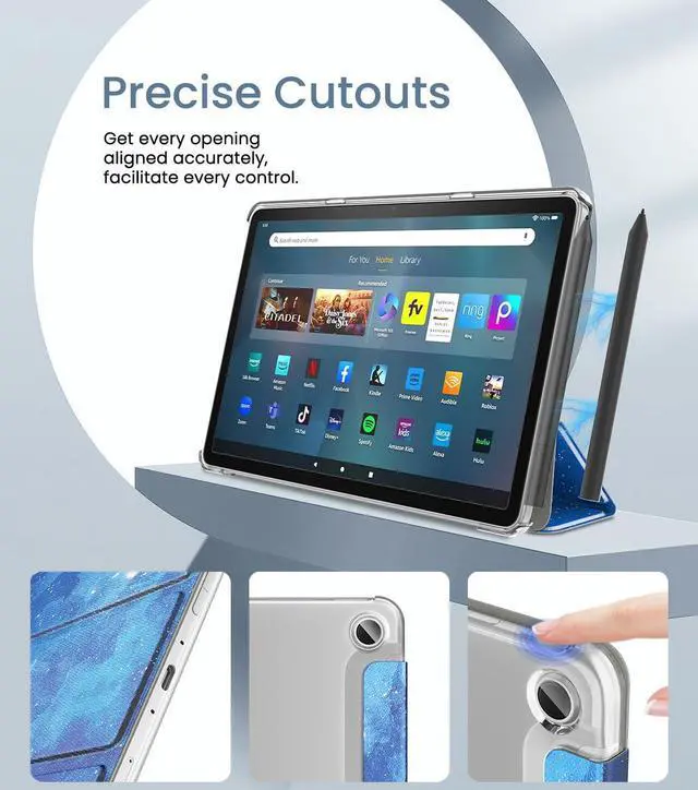 Auto Wake/Sleep: Automatically wakes or puts Fire tablet 11 max to sleep when the lid is opened and closed. Easy access to all features and controls. Strong magnets for convenient closing the cover and avoid accidental opening.