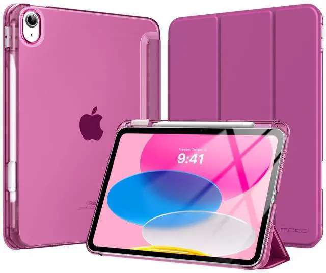MoKo for iPad (A16) 11th Generation Case 11 Inch 2025, iPad 10th Generation Case 10.9 Inch 2022 with Pencil Holder, Slim Light Trifold Protective Cover with Hard PC Translucent Back Shell, Fuchsia