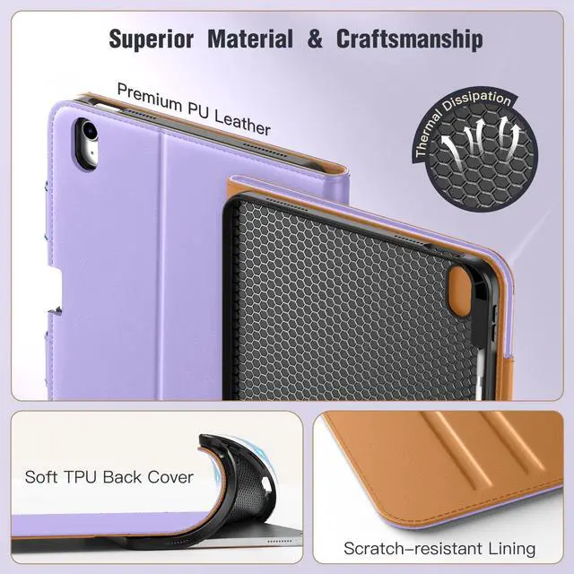 Full Protection: The iPad A16 case & iPad 10th generation case is made of high-quality PU leather with a soft microfiber lining and a flexible TPU back shell to provide complete protection for your precious iPad 11th generation tablet 2025 or iPad 10th generation tablet 2022, preventing impacts, scratches, and falls ^^ Built-in Hand Strap & Front Pocket: Interior hand strap allowing easy and firm control of the iPad 11 inch by one hand. The front pocket of this iPad 11th generation case can be used to manage documents, bank cards, business cards, notes, cash or bills ^^