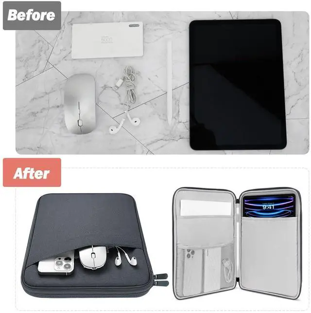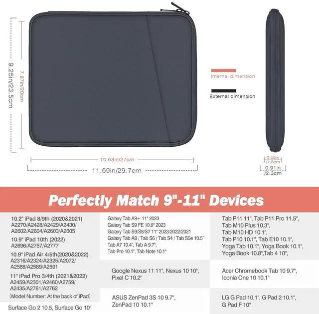 COMPATIBLE DEVICE - The sleeve bag is ideal for most 9-11 tablets. Fits with 11"iPad Air M3, iPad A16 2025, iPad Air 5/4. 10.9" 2022/2020, iPad Pro 11 M2/M1 2022/2021, iPad 10. 10.9 2022, iPad 9. Gen 10.2" 2021, iPad 8. /7. Gen 10.2 2020/2019, iPad Air (3. Gen) 10.5 Inch 2019, iPad Pro 10.5 inch 2017, iPad 9.7 6. /5. Gen (2018/2017), iPad 1/2/3/4, iPad Air/Air 2, Tab S6 Lite 10.4, Galaxy Tab S8/S9 11 2022/2023, Tab A8 10.5, Surface Go 2/3 10.5, Surface Go 10 2018 Release.