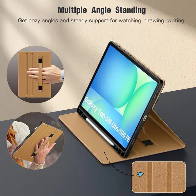 • Multiple Angles: The samsung galaxy tab s10 fe case with 2 non-slip grooves provides multiple viewing angles, whether you're watching videos, browsing the web or reading, you can have a comfortable angle to enhance your vi