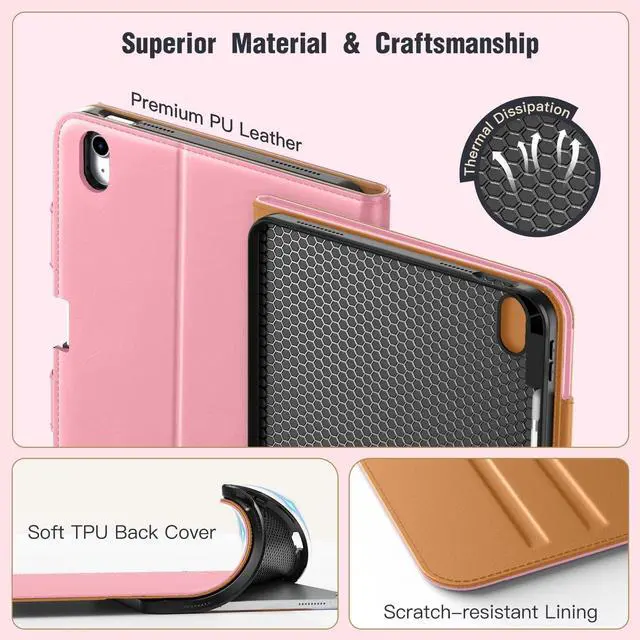 • Full Protection: The iPad A16 case & iPad 10th generation case is made of high-quality PU leather with a soft microfiber lining and a flexible TPU back shell to provide complete protection for your precious iPad 11th generation tablet 2025 or iPad 10th generation tablet 2022, preventing impacts, scratches, and falls