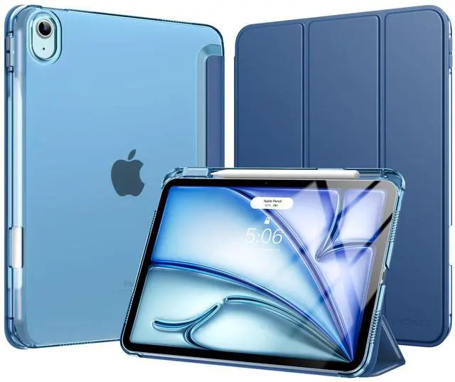 MoKo for iPad Air 11 inch Case M3/M2 2025/2024, iPad Air 5th/4th Gen 10.9 inch Case 2022/2020 with Pencil Holder, Slim Lightweight Trifold Cover with Hard PC Translucent Back Shell, Touch ID,Navy Blue