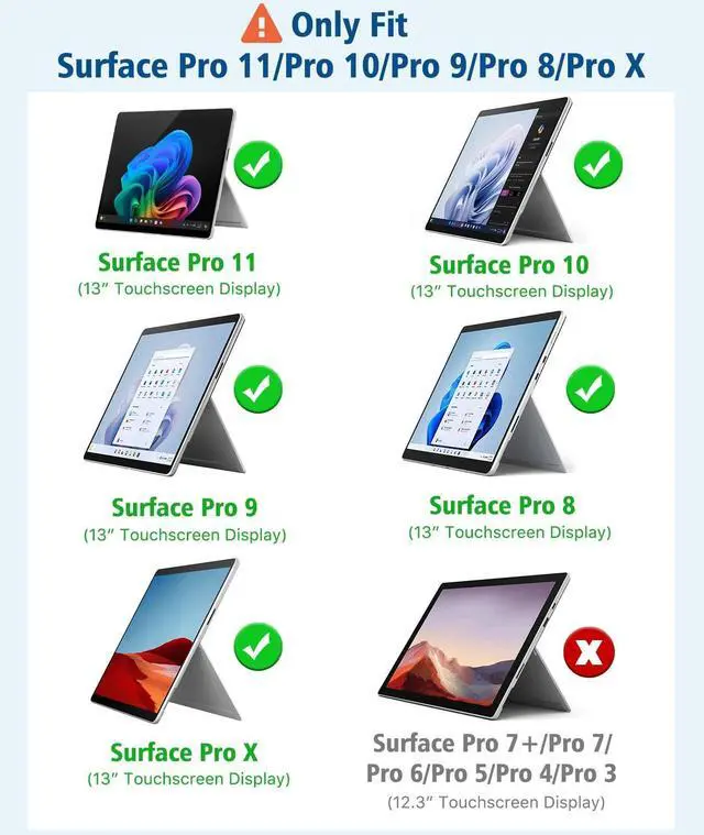 COMPATIBLE MODEL: Exclusively designed for Microsoft Surface Pro 11 2024 / Surface Pro 10 2024 / Surface Pro 9 and Pro 9 5G 13-Inch 2022 / Pro 8 13" 2021 / Surface Pro X.