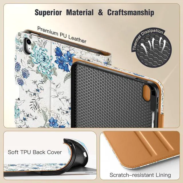 Full Protection: The iPad A16 case & iPad 10th generation case is made of high-quality PU leather with a soft microfiber lining and a flexible TPU back shell to provide complete protection for your precious iPad 11th generation tablet 2025 or iPad 10th generation tablet 2022, preventing impacts, scratches, and falls ^^ Built-in Hand Strap & Front Pocket: Interior hand strap allowing easy and firm control of the iPad 11 inch by one hand. The front pocket of this iPad 11th generation case can be used to manage documents, bank cards, business cards, notes, cash or bills ^^