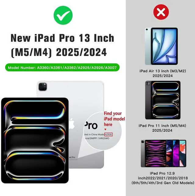 • Compatibility: Designed exclusively for iPad Pro 13 Inch M5 2025 (Model: A3360, A3361, A3362), iPad Pro 13 Inch M4 2024 (Model: A2925, A2926, A3007); It is Not compatible with any other devices. Please check back bottom of your iPad to find the model number