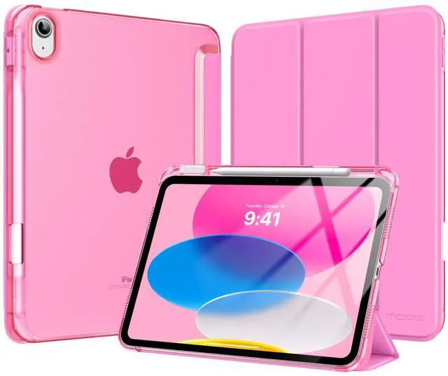MoKo for iPad (A16) 11th Generation Case 11 Inch 2025, iPad 10th Generation Case 10.9 Inch 2022 with Pencil Holder, Slim Light Trifold Protective Cover with Hard PC Translucent Back Shell, Peony