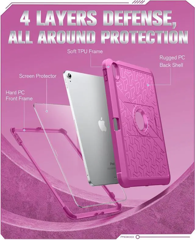 Design: Dual layer design includes hard hollow-out back shell with made of Polycarbonate with TPU frame and an anti-scratch full-screen protector. Not only to fully protect your iPad (A16 11th Generation or iPad 10th Generation, but it also displays your original logo beauty for iPad. Accurate cutouts also support Touch ID to function well without taking off the case ^^ All around