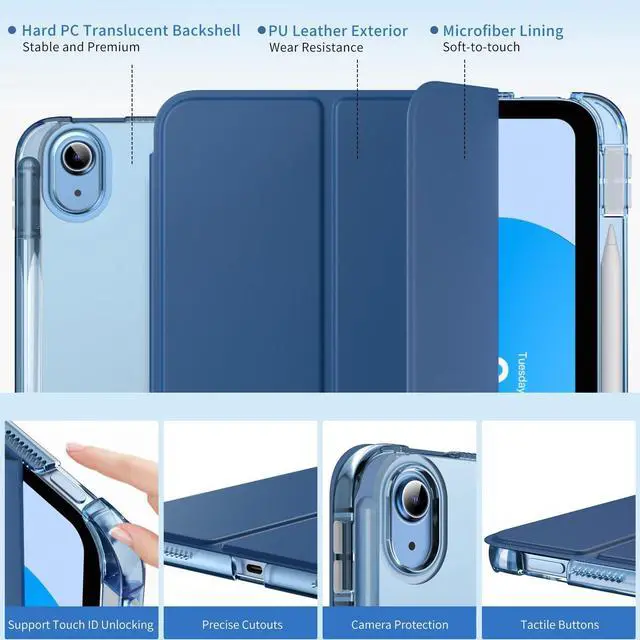 Auto Sleep/Wake Function: The slim iPad case 10th generation supports auto sleep and wake feature, open or close the case, wake up the tablet or put it into sleep, save battery power and extend the use time. Precise cutouts support Touch ID functionality, and easy access to buttons, ports, speakers and more