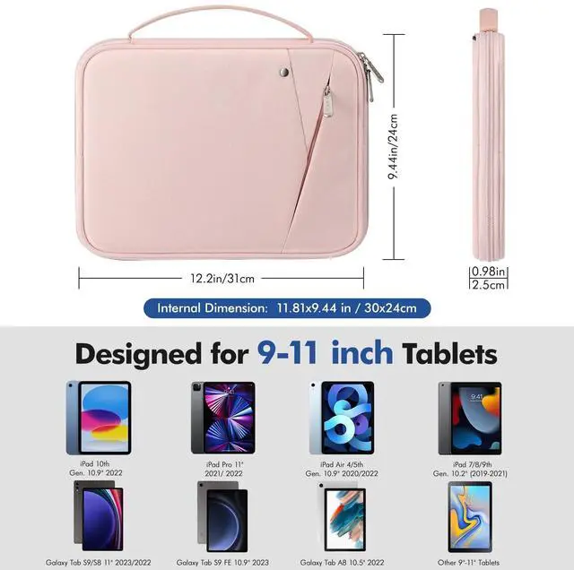 Universal iPad Sleeve- The tablet carrying bag is designed specially for 9-11 inch tablets, such as New 11-inch iPad Pro M5 2025, New 11-inch iPad Air M3 2025, New iPad (A16) 2025, iPad Pro 11 M4 2018-2024, iPad 10th Gen. 10.9", iPad Air 4/5th Gen. 10.9", iPad 7/8/9th Gen. 10.2" (2019-2021), iPad Air/iPad Pro 10.5" / 9.7", New Galaxy Tab S9/S8 11" 2023/2022, Galaxy Tab S9 FE 10.9" 2023, Galaxy Tab A8 10.5" 2022, Galaxy S7/A9+/A8/A7, Surface Go 2/3th 10.5" and other 9"-11" tablets.