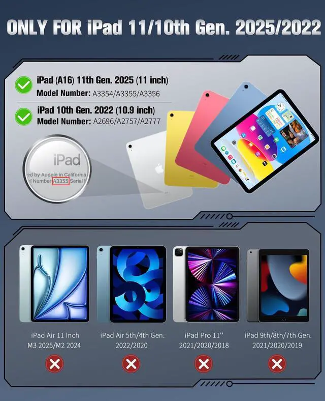 Compatible Model Number: Designed exclusively to compatible with Apple iPad (A16) 11th Generation 2025 11
