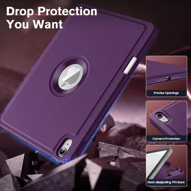 • Built-in Apple Pencil Holder : The Built-in Pencil holder help carry your Apple Pencil effortlessly whenever you want, easily to put your Apple aside pencil with your all-new iPad (A16) 11th generation/10th generation case. Both will be well protected by this 11th (A16)/ 10th gen iPad case