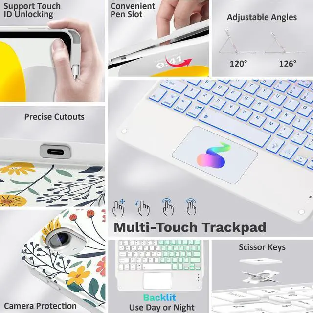 Compatibility: SPECIALLY and ONLY designed for iPad (A16) 11th generation 11-inch 2025 (Model: A3354, A3355, A3356), iPad 10th generation 10.9 -inch 2022 (Model: A2696, A2757, A2777). Including 1 x iPad 11th/10th generation case, 1 x wireless 7-color backlit touchpad keyboard, 1x USB-C charging cord, 1 x user guide. NOT compatible with any other iPad models ^^ Detachable