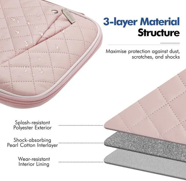 ^^ Excellent Protection: With 3-layer material structure with protection features of splash-resistant polyester exterior, shock-absorbing pearl cotton Interlayer and wear-resistant interior lining, this tablet sleeve bag can protect your devices and other items from dust, scratches and shocks. ^^ Easy to
