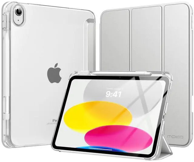 MoKo for iPad (A16) 11th Generation Case 11 Inch 2025, iPad 10th Generation Case 10.9 Inch 2022 with Pencil Holder, Slim Light Trifold Protective Cover with Hard PC Translucent Back Shell, Silver