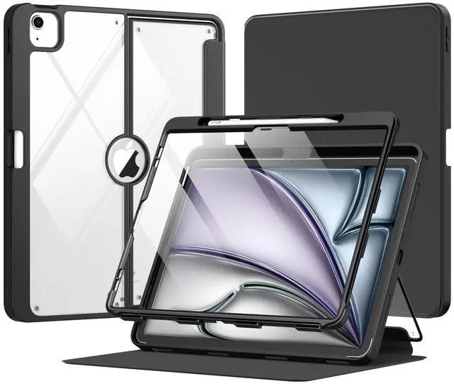 Multiple Viewing Angles: Built-in magnets provide you with multiple stable use angles, free your hands, convenient for viewing, videos, typing, etc. Transparent PC back shell showcases the original beauty of your device, you can use stickers to DIY your own ipad air 2024 clear case ^^ Auto Wake and