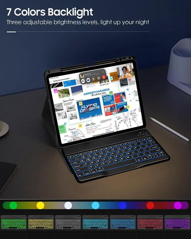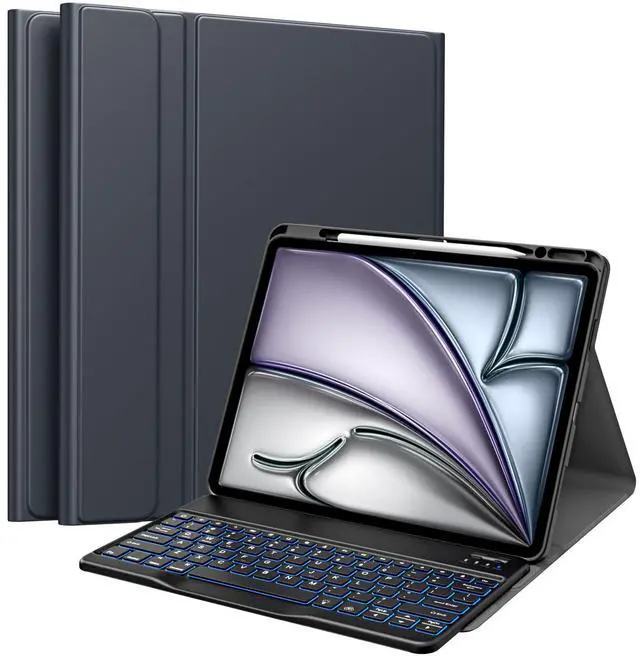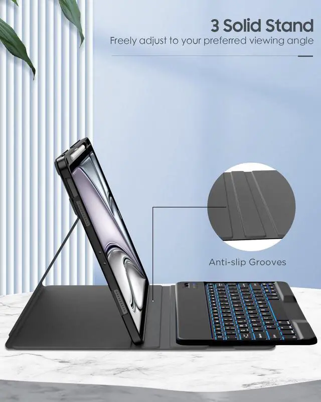 ^^ [Multiple Viewing Angles] This for iPad Air 13-inch keyboard case has 3 grooves to adjust the viewing angle as you like, make your tablet stand steadily. ^^ [Long Life Battery Rechargeable Keyboard] Built-in powerful 420mAh battery for iPad pro keyboard case 12.9 inch. It will enter energy-saving mode automatically if not in use for 10 minutes, which worry-free use and long standby time. Using a Type-C charging port of keyboard charges faster, only 2 hours fully charged ^^ [Illuminated Typing] Press Fn + C (for 2 seconds) to connect the keyboard to your tablet and press Fn + Q to switch to IOS system before using it firstly.