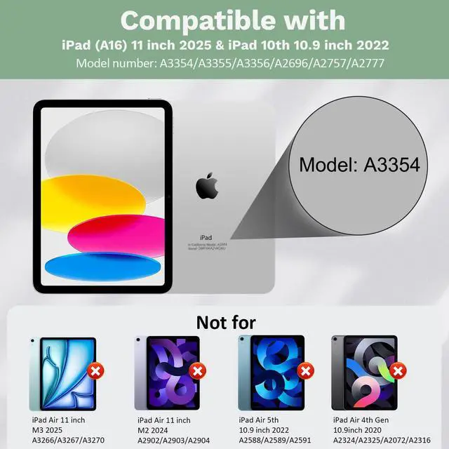 Compatibility: SPECIALLY and ONLY designed for iPad (A16) 11th generation 11-inch 2025 (Model: A3354, A3355, A3356), iPad 10th generation 10.9 -inch 2022 (Model: A2696, A2757, A2777). Including 1 x iPad 11th/10th generation case, 1 x wireless 7-color backlit touchpad keyboard, 1x USB-C charging cord, 1 x user guide. NOT compatible with any other iPad models ^^ Detachable