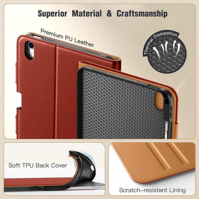 Full Protection: The iPad A16 case & iPad 10th generation case is made of high-quality PU leather with a soft microfiber lining and a flexible TPU back shell to provide complete protection for your precious iPad 11th generation tablet 2025 or iPad 10th generation tablet 2022, preventing impacts, scratches, and falls ^^ Built-in Hand Strap & Front Pocket: Interior hand strap allowing easy and firm control of the iPad 11 inch by one hand. The front pocket of this iPad 11th generation case can be used to manage documents, bank cards, business cards, notes, cash or bills ^^