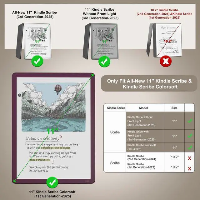 Compatibility: Only Designed for 11" all-new Kindle Scribe 2025 Releases (3rd Generation) and 11" Kindle Scribe Colorsoft 2025 Releases (1st Generation). Will NOT fit any other kindle tablet ^^ Strong