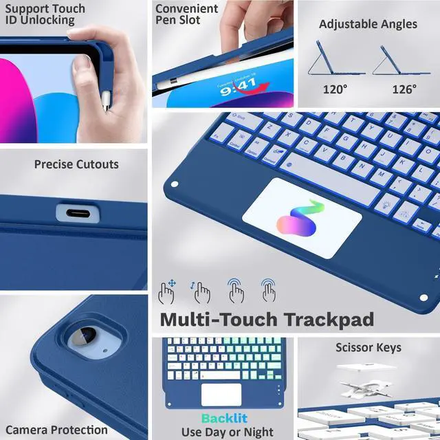 Compatibility: SPECIALLY and ONLY designed for iPad (A16) 11th generation 11-inch 2025 (Model: A3354, A3355, A3356), iPad 10th generation 10.9 -inch 2022 (Model: A2696, A2757, A2777). Including 1 x iPad 11th/10th generation case, 1 x wireless 7-color backlit touchpad keyboard, 1x USB-C charging cord, 1 x user guide. NOT compatible with any other iPad models ^^ Detachable