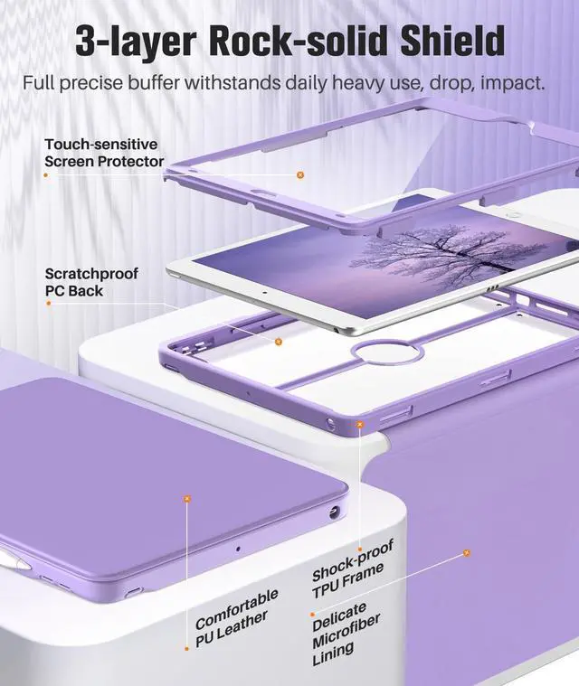 ^^ Drop Absorption: ipad 9th generation case with transparent hard PC back plate and flexible TPU shock absorbing frame, enhances drop protection to withstand daily drops, bumps and shocks. PU leather exterior and soft microfiber lining protect the ipad 9th generation from dust, fingerprints and scratches. ^^ Screen Protector and