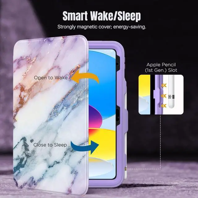 Sleep: The iPad 10th generation case supports auto sleep and wake feature, open or close the case, wake up the tablet or put it into sleep, save battery power and extend the use time. Precise cutouts support Touch ID functionality, and easy access to buttons, ports, speakers and more
