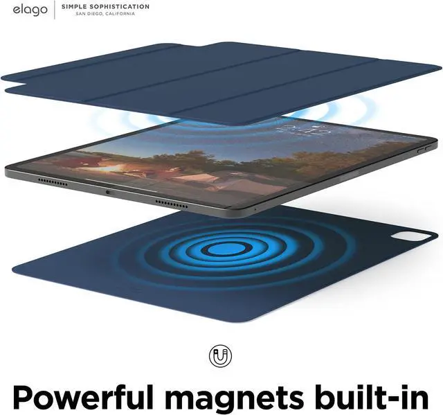 elago Case for iPad Air 13(M3, M2) / Pro 12.9 (3rd, 4th, 5th, 6th) -iPad Case with Magnetic Attachment to Metal Materials, Compatible with Apple iPad Pencil and elago's Pencil case (Blue)