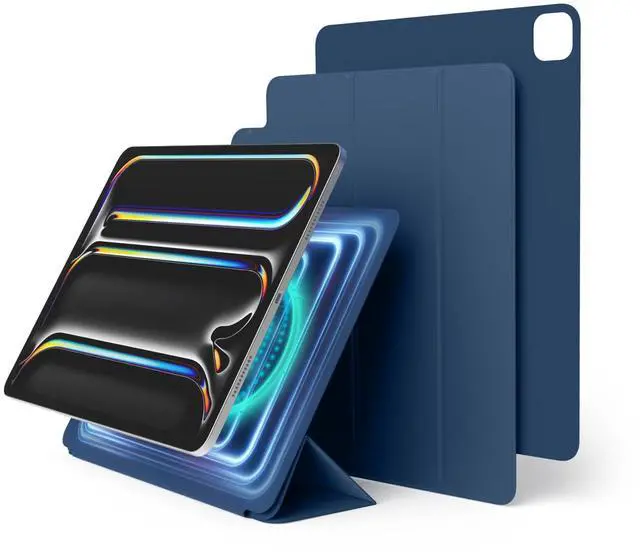 elago Magnetic Folio Case for iPad Pro 13 inch Cover (M4) - Back Plate can be Attached to Metal Materials, Wake/Sleep functionality, Compatible with Apple Pencil 2 [Blue]