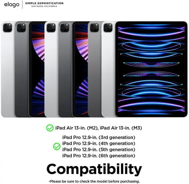 elago Case for iPad Air 13(M3, M2) / Pro 12.9(3rd, 4th, 5th, 6th) -iPad Case with Magnetic Attachment to Metal Materials,Compatible with Apple iPad Pencil and elago's Pencil case (Dark Grey)