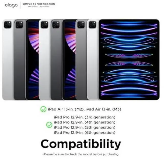 elago Case for iPad Air 13(M3, M2) / Pro 12.9(3rd, 4th, 5th, 6th) -iPad Case with Magnetic Attachment to Metal Materials,Compatible with Apple iPad Pencil and elago's Pencil case (Light Grey)