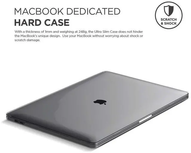 MACBOOK DEDICATED HARD CASE With a thickness of 1mm, the Ultra Slim Case does not hinder the MacBook's unique design. Use your MacBook without working about shock or scratch damage.