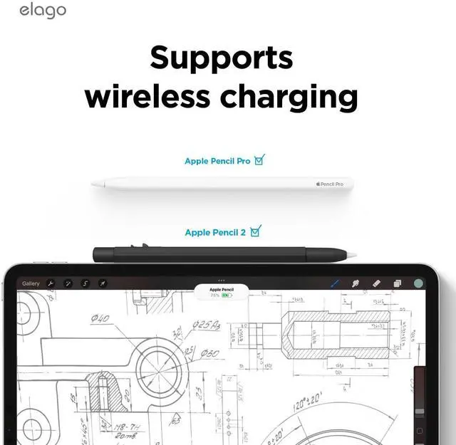Silicone PREVENTS SCRATCHES on the surface it rests on and KEEPS IT SECURELY THERE with amazing grip. The case is compatible with iPad and attaches magnetically as if there was no case at all! MUST INSTALL PROPERLY FOR WIRELESS CHARGING - PLEASE READ INSTRUCTIONS IN IMAGES OR ONES PROVIDED CAREFULLY! ^^ PERFECT GIFT FOR any Pencil user! Great for BIRTHDAY PRESENTS for loved ones and gifts during the holiday season ESPECIALLY CHRISTMAS FOR STOCKING STUFFERS! ^^ elago is a DESIGN COMPANY FIRST AND FOREMOST. Our motto is SIMPLE SOPHISTICATION because we create products that are USEFUL AND AWESOME! WE ALWAYS CREATE products that WE OURSELVES USE, so we know YOU WILL LOVE IT!