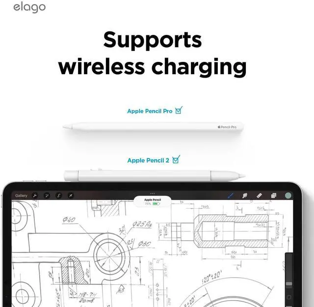 Silicone PREVENTS SCRATCHES on the surface it rests on and KEEPS IT SECURELY THERE with amazing grip. The case is compatible with iPad and attaches magnetically as if there was no case at all! MUST INSTALL PROPERLY FOR WIRELESS CHARGING - PLEASE READ INSTRUCTIONS IN IMAGES OR ONES PROVIDED CAREFULLY! ^^ PERFECT GIFT FOR any Pencil user! Great for BIRTHDAY PRESENTS for loved ones and gifts during the holiday season ESPECIALLY CHRISTMAS FOR STOCKING STUFFERS! ^^ elago is a DESIGN COMPANY FIRST AND FOREMOST. Our motto is SIMPLE SOPHISTICATION because we create products that are USEFUL AND AWESOME! WE ALWAYS CREATE products that WE OURSELVES USE, so we know YOU WILL LOVE IT!