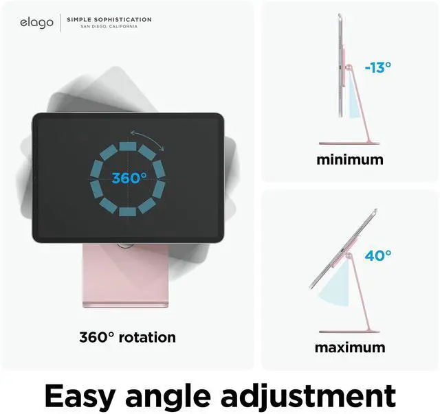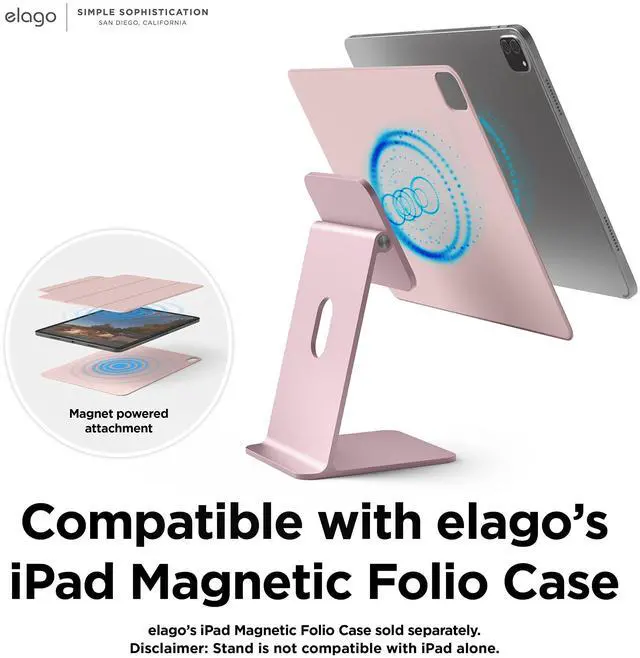 elago Magnetic Folio case sold separately. If you don't have an elago magnetic folio case, USE THE RING. Ring is INCLUDED. ^^ STRONG MAGNETS KEEP YOUR tablet in place. VIEWING ANGLE IS ADJUSTABLE to optimize your work space and allows you to place the stand at various levels on your desk. CABLE MANAGEMENT HOLE on the stand allows you to keep all cables going to and from the tablet in one area. ^^ PERFECT GIFT FOR anyone in need of a stand compatible with iPad! Great for BIRTHDAY PRESENTS for loved ones and gifts during the holiday season ESPECIALLY CHRISTMAS FOR STOCKING STUFFERS! ^^ elago is a DESIGN COMPANY FIRST AND FOREMOST.