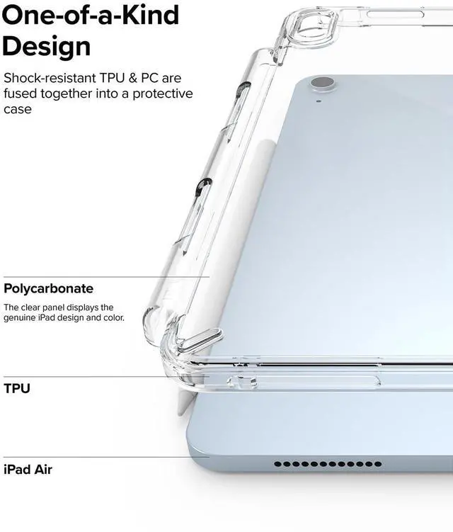 Ringke Fusion Compatible with iPad Air 11 Inch Case (M3 2025 & M2 2024) Over Charge Prevention Cover with Pencil Holder Designed for iPad Air 7th, 6th, 5th, 4th Generation - Clear