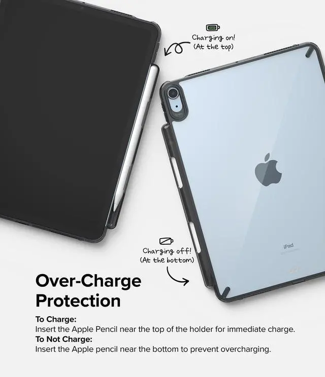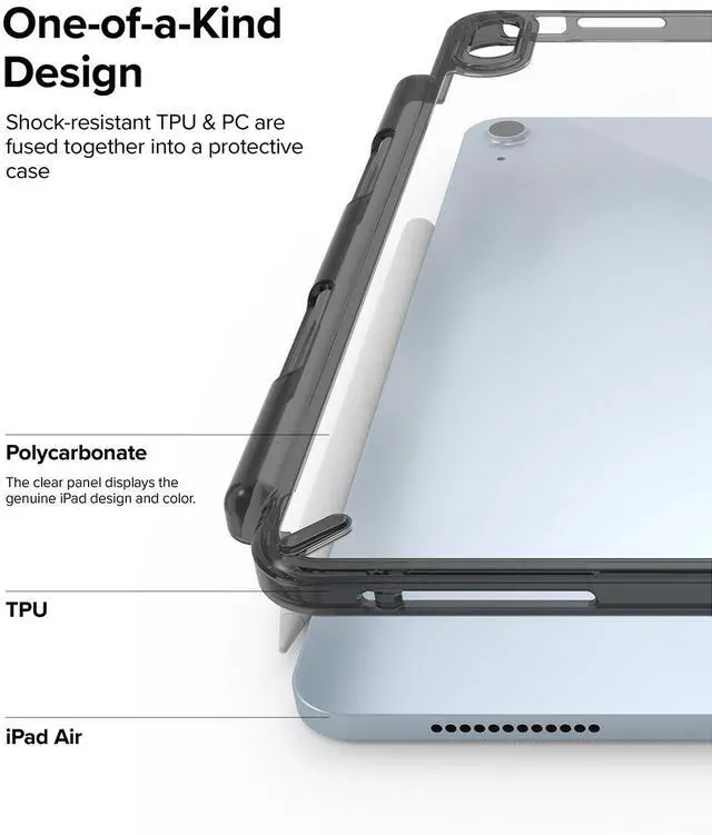 Compatible with iPad Air 11 Inch (7th, 6th, 5th, 4th Generation) ^^ See-through back shows off original design of device ^^ Durable clear PC back and shock-absorbent TPU frame ^^ Insert the pencil near the bottom to prevent overcharging ^^ Lanyard holes allow for the usage of hand straps, wrist lanyards, and phone charms (Additional accessories not included)