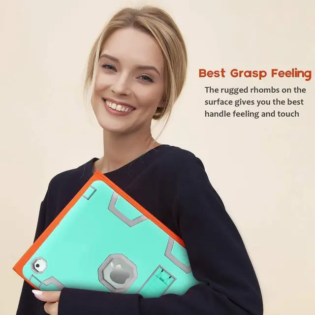 Material: Silicone and PC - Durable, Safety and Non-Toxicity, Lasting color and not easily deformed. ^^ Easy to convert Kick Stand Design=Extremely Convenient and Excellent for Video and Chatting ^^ Provides a perfect protection to your iPad against shocks, damages, dusts and scratches. ^^ Precise cutouts for improved access to all ports, buttons, cameras, speakers, and mics.