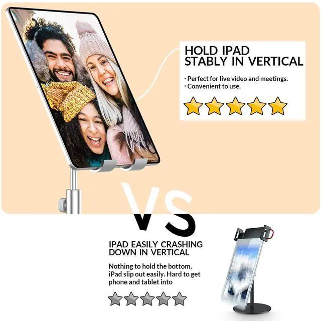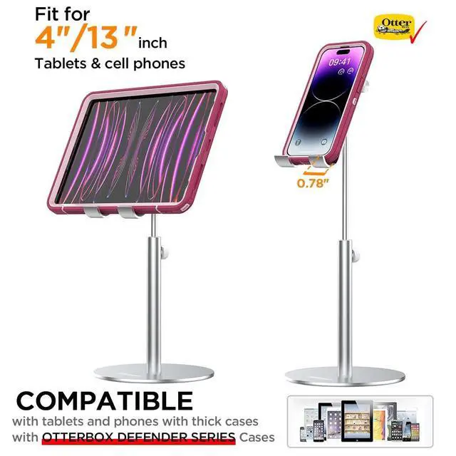 STURDY & STABLE: The for iPhone/for iPad stand is made of premium, reinforced aluminum alloy. It securely supports tablets and prevents wobbling or falling, moreover, the soft silicone pads safeguard your device from daily scratches and sliding ^^