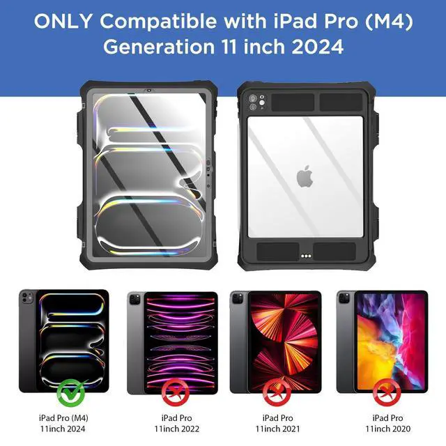 Gen 2020 (Model: A2228 / A2231 / A2068 / A2230). Please check back bottom of your iPad to find the model number "Axxxx". ^^ Completely Waterproof and Snowproof. Fully submersible to 6.6 ft/2 m for 30minutes. Sealed from snow, ice, dirt and dust. Meets or exceeds IP-68 Ingress Protection Rating. not only protect ipad for underwater & outdoor activities but also for daily use. Built For The Everyday ^^ - Created to take your iPad to the next level, AICase offers a slim, yet protective case with 10 ft drop protection that supports you through daily life whether youre working, cooking, playing with the kids, or on the go. ^^ SENSITIVE DISPLAY TOUCHPrecision fit iPad Pro 11-Inch(2022/2021/2020 Model)Case, prevents scratches without sacrificing the sensitivity. You can easily slide, slick, write on the screen with the case, Precise design of each button and port based on iPad Pro 11-Inch(2022/2021/2020 Model). outline, power&volume button are easily reach. ^^ Built-in screen protector, provides full access to ports and functions while protecting from dust and scratches, can take pictures and videos underwater.