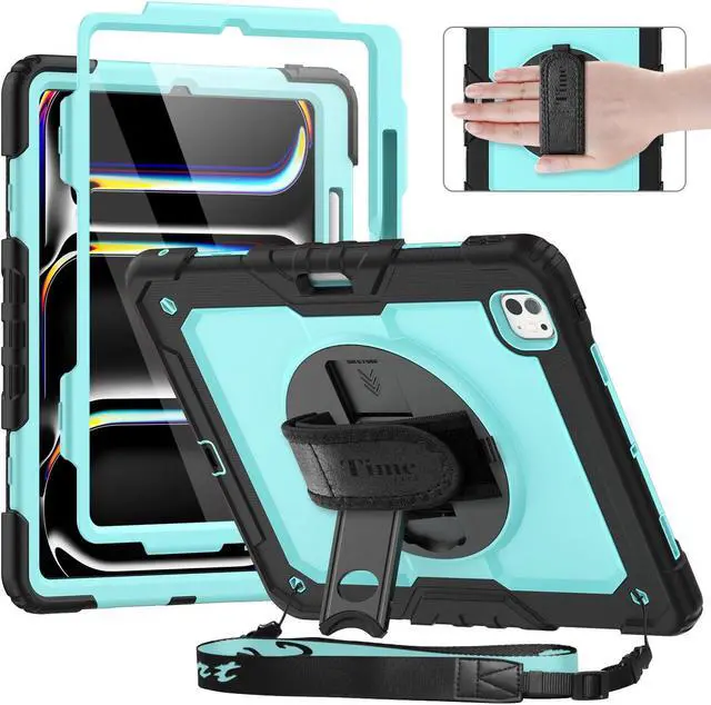 timecity for iPad Pro 13 Inch M4 Case 2024 7th Gen, 360deg Rotating Stand, Pencil Holder & Wireless Charging, Shockproof with Screen Protector & Shoulder Strap - for Designers & Professionals, Blue