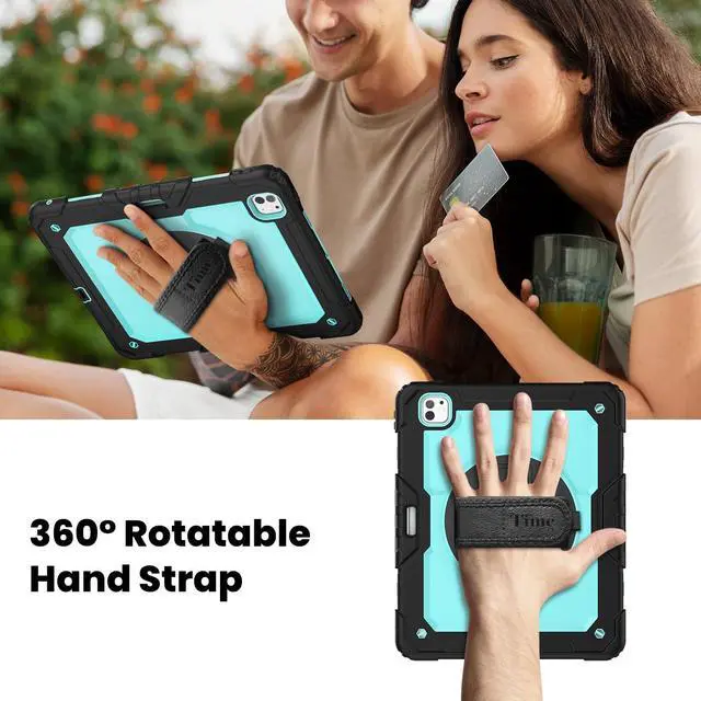 • MULTI-ANGLE FUNCTIONALITY: 360deg rotating stand with 5 positions for video calls, notes, or viewing; Detachable shoulder strap for commutes; Anti-slip hand strap secures during outdoor work; Dedicated pencil holder for hiking/transport